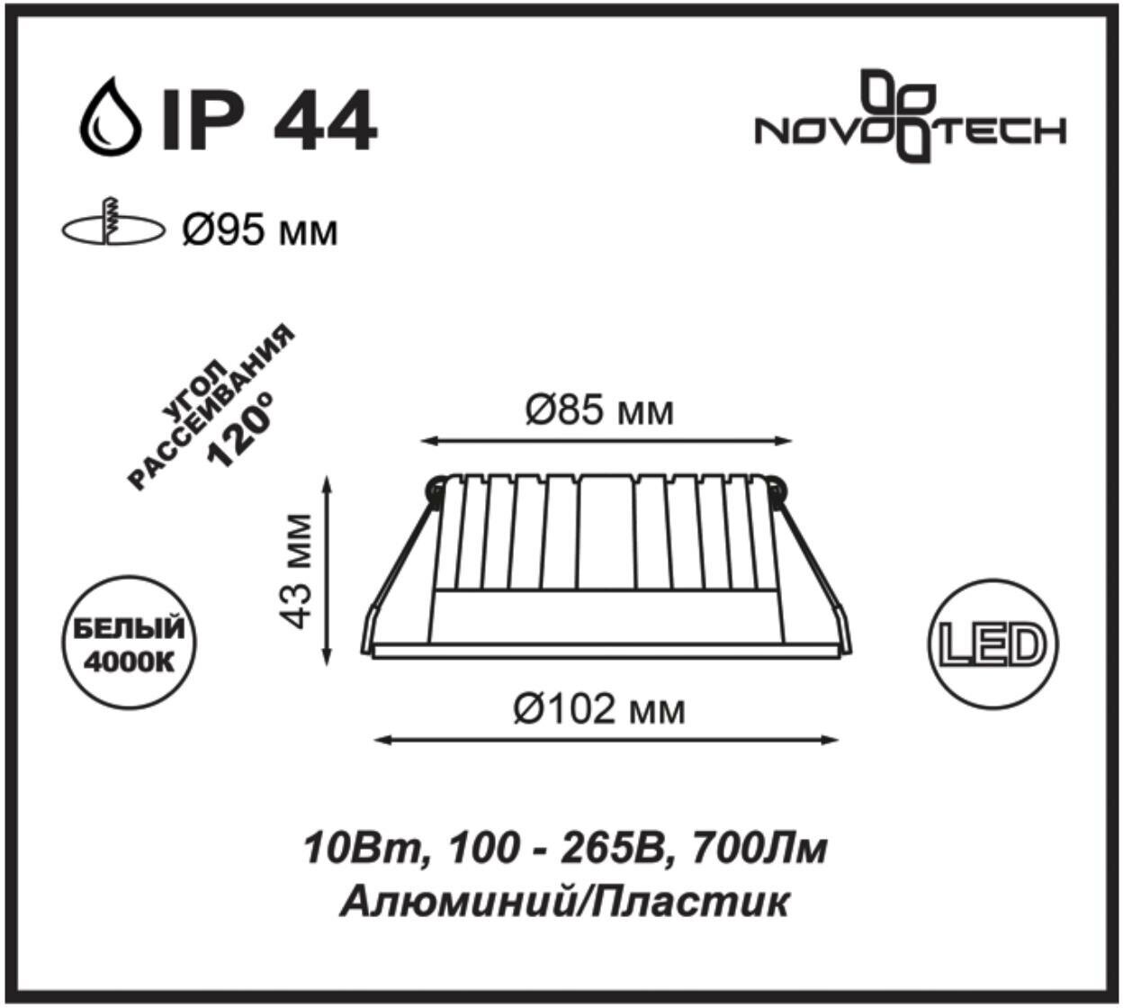 Светильник светодиодный встраиваемый Novotech 357908 DRUM
