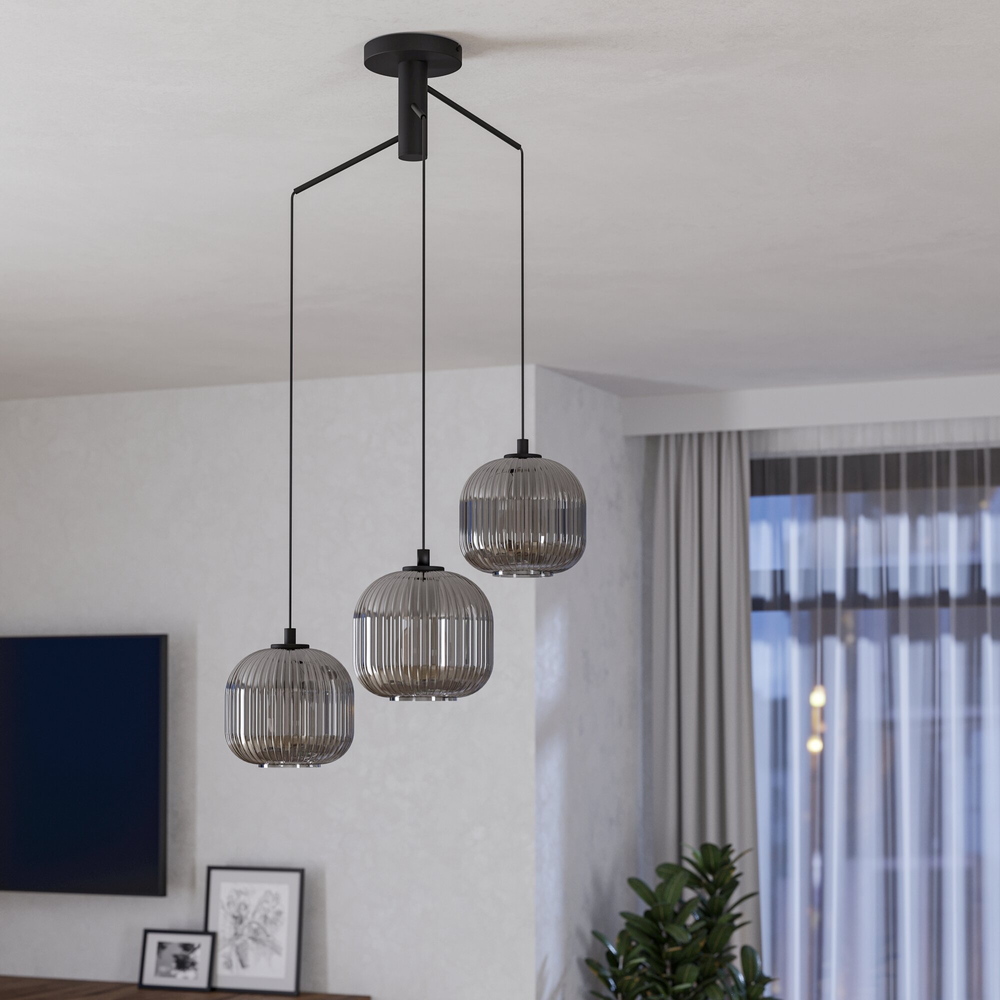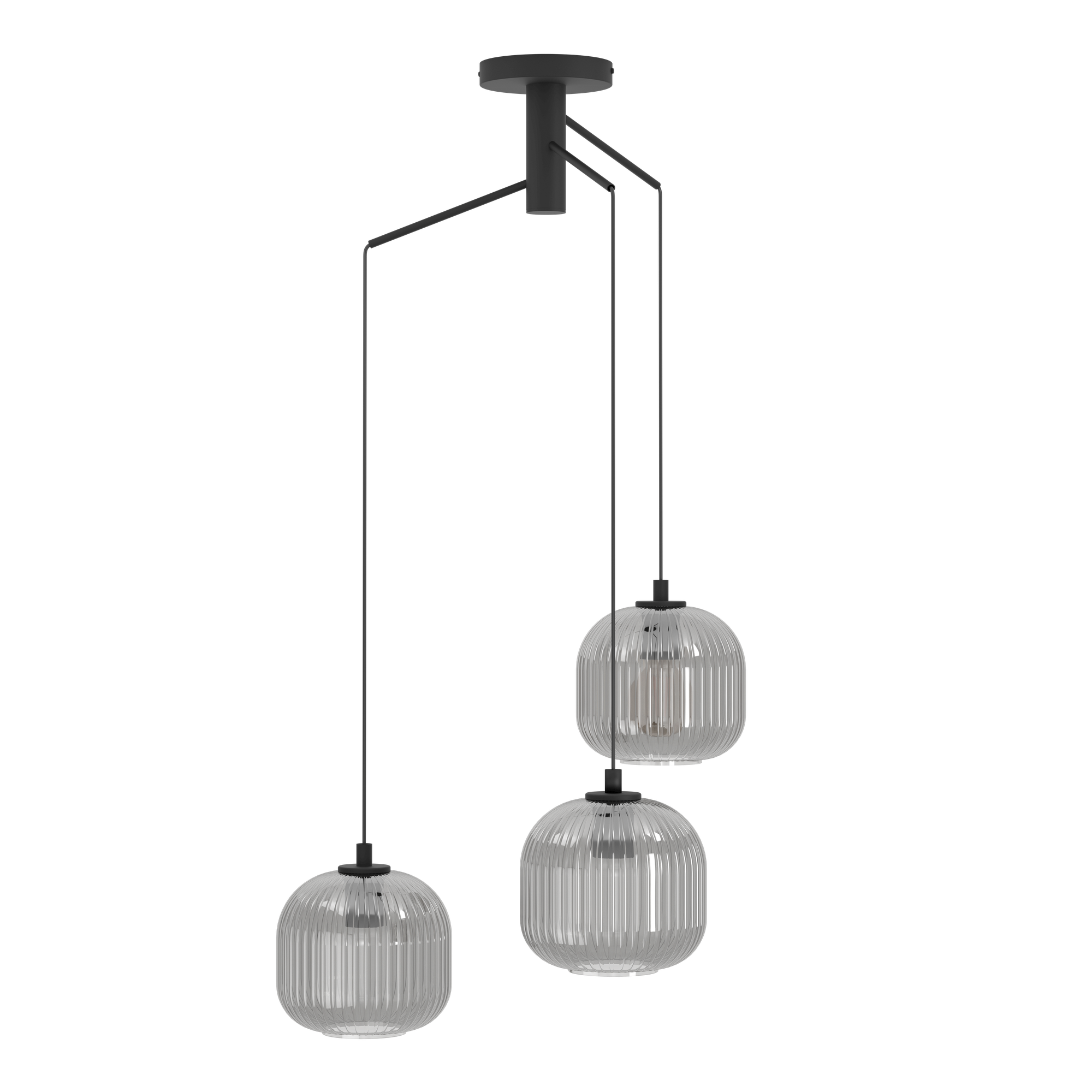 99372 Подвес MANTUNALLE 1, 3х40W (E27), L1200, Ø200, H1100, сталь, черный/стекло с напыл., черный-пр
