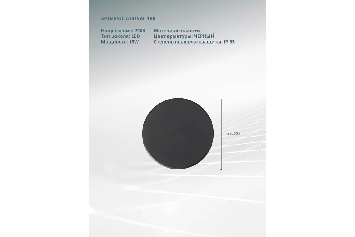 Фасадный светильник Arte Lamp NIMBO A4506AL-1BK / LED / 20Вт / IP65 / 3000-6500К / чёрный 1 890 ₽