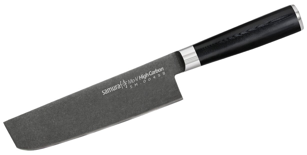 10 цен на Нож кухонный Накири Samura Mo-V Stonewash SM-0043B, 16.7 см, черный