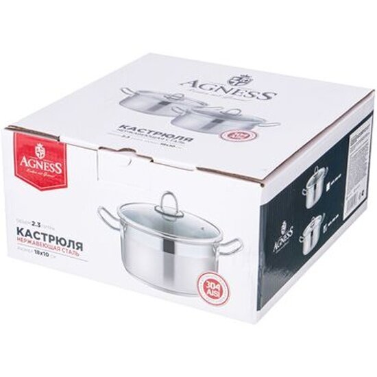 Кастрюля Agness 18x10 см 2,3 л высококачественная нерж сталь 18/10 со стекл. крышкой информация: