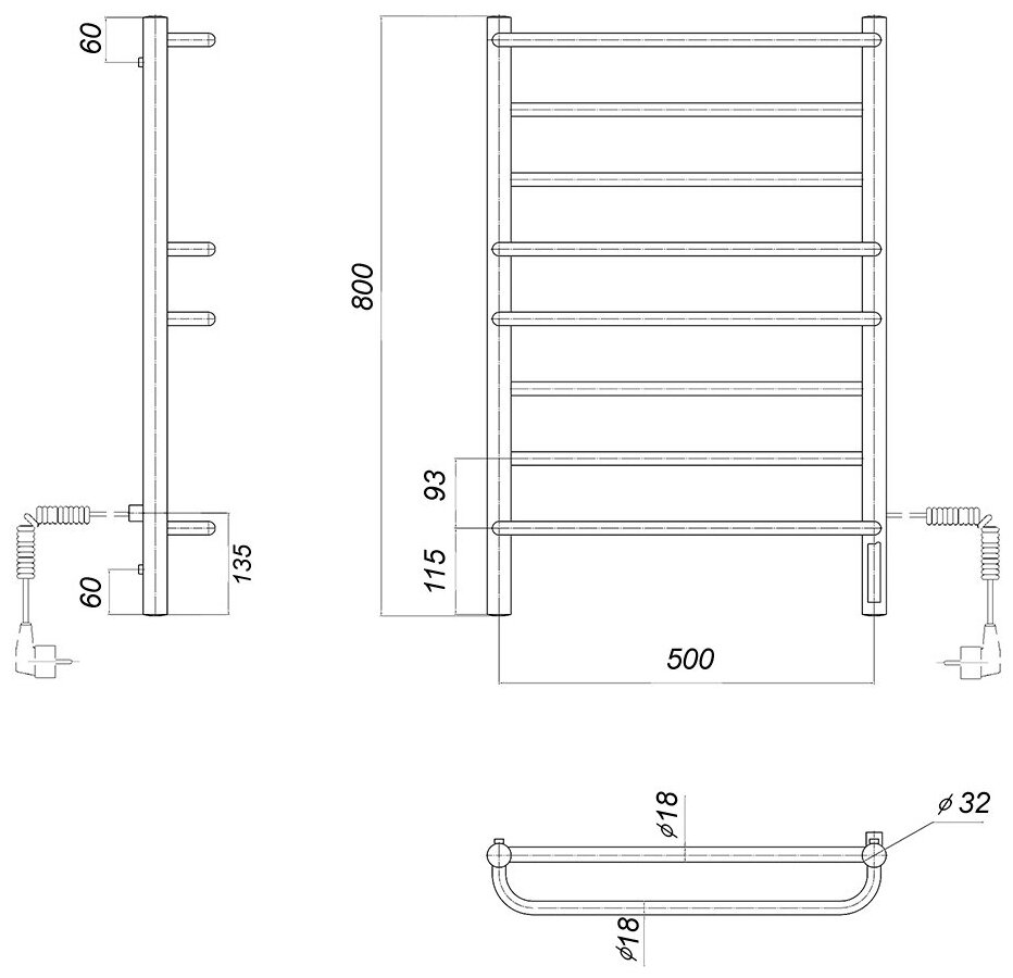 | Дополнительная информация | Полотенцесушитель в сборе 1 шт., Комплект для скрытого подключения 1 шт., Провод с вилкой 1 шт., Кронштейн к стене - 4 шт., Паспорт на изделие |