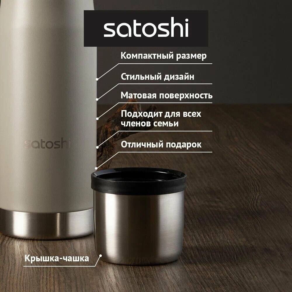 Термос для чая и кофе 600 мл Satoshi Денали, крышка-чашка, кнопка-клапан, нержавеющая сталь