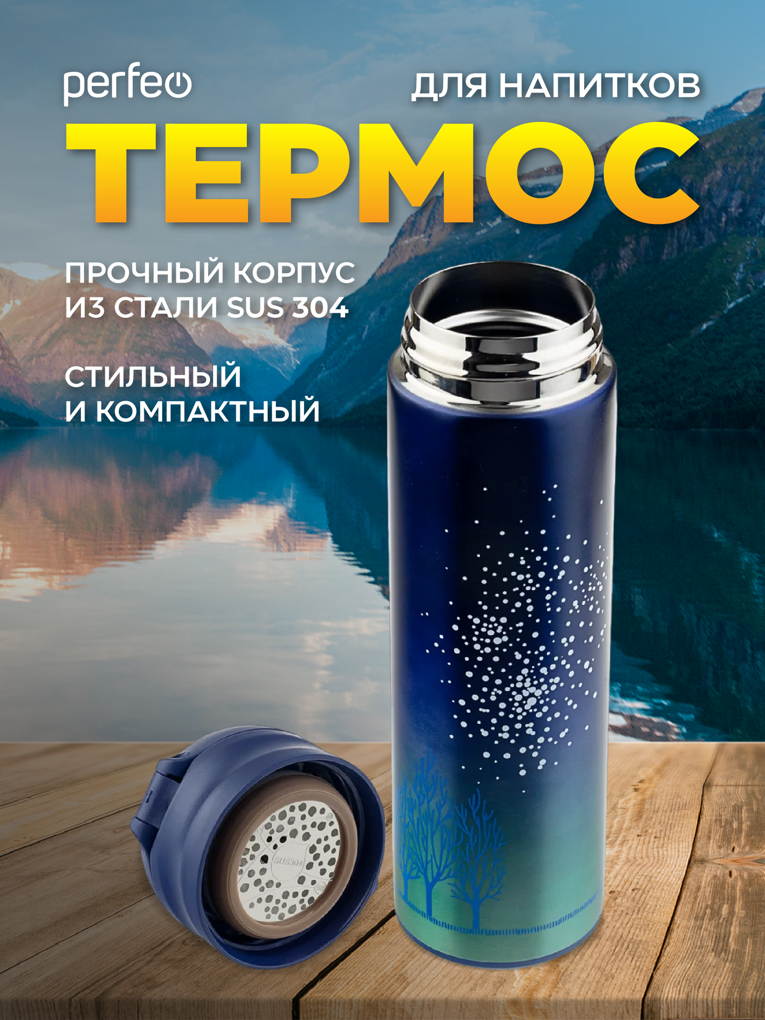 10 цен на Термос PERFEO для напитков с крышкой-поилкой, ситечком, объем 0,5 л, звездное небо (PF_C3714)