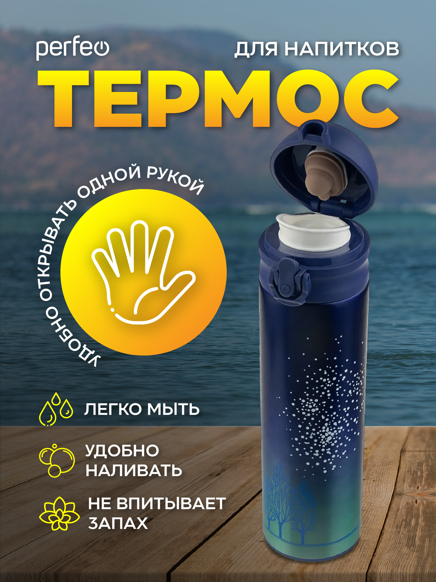 Отзывы на Термос PERFEO для напитков с крышкой-поилкой, ситечком, объем 0,5 л, звездное небо (PF_C3714)