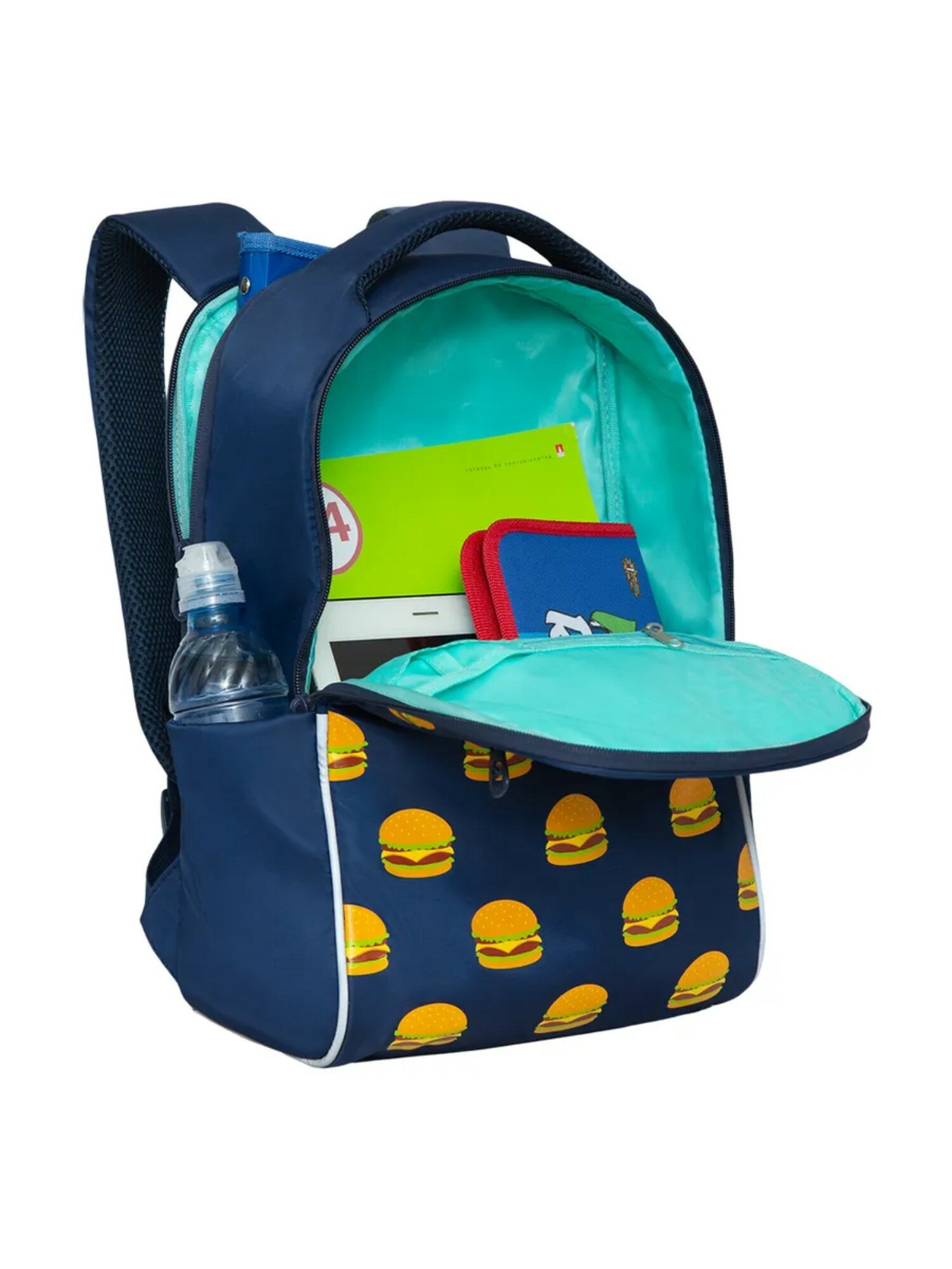 Рюкзак детский Grizzly, 22*28*10см, 1 отделение, 3 кармана, укрепленная спинка, синий (арт. 353541)