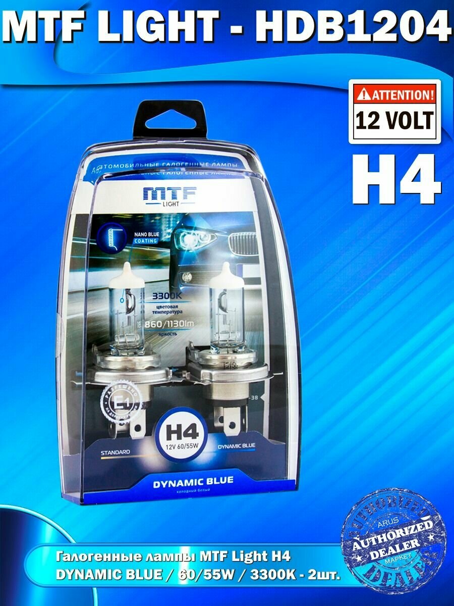 Автолампы H4 - Галогенные лампы MTF Light серия DYNAMIC BLUE 3300K информация: