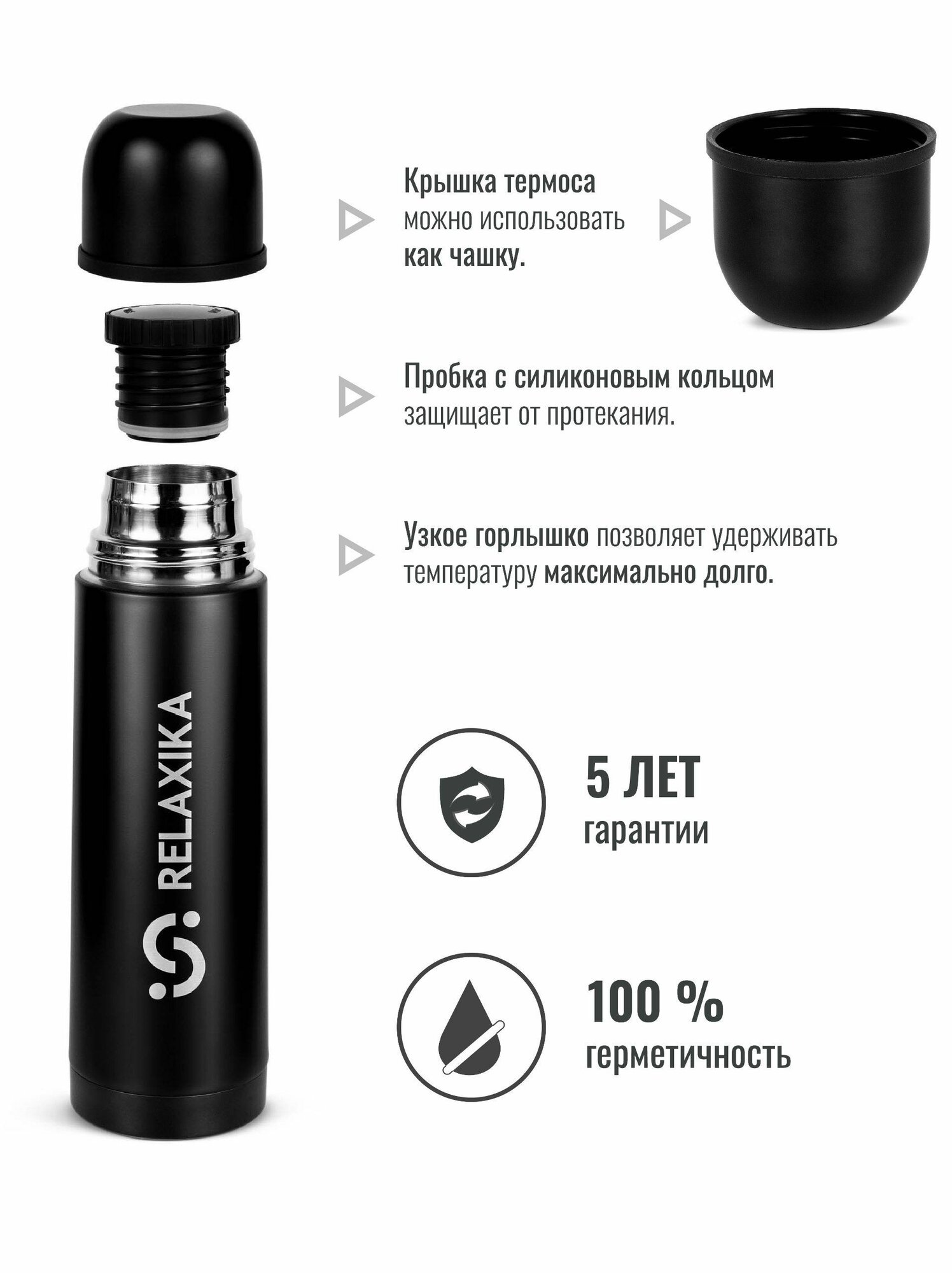 10 цен на Термос Релаксика Relaxika для чая и кофе (0,5 литра), оружейный черный, R101.500.2