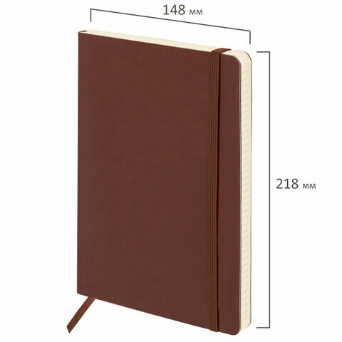Блокнот А5 (148x218 мм), BRAUBERG "Metropolis Ultra", под кожу, 80 л, резинка, клетка, коричневый, 111023 730 ₽