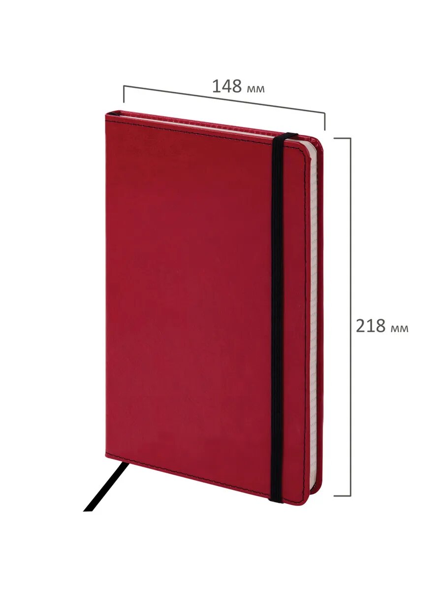 Блокнот А5 (148x218 мм), BRAUBERG "Office", под кожу, 80 л., резинка, клетка, красный, 111030, 111030 672 ₽