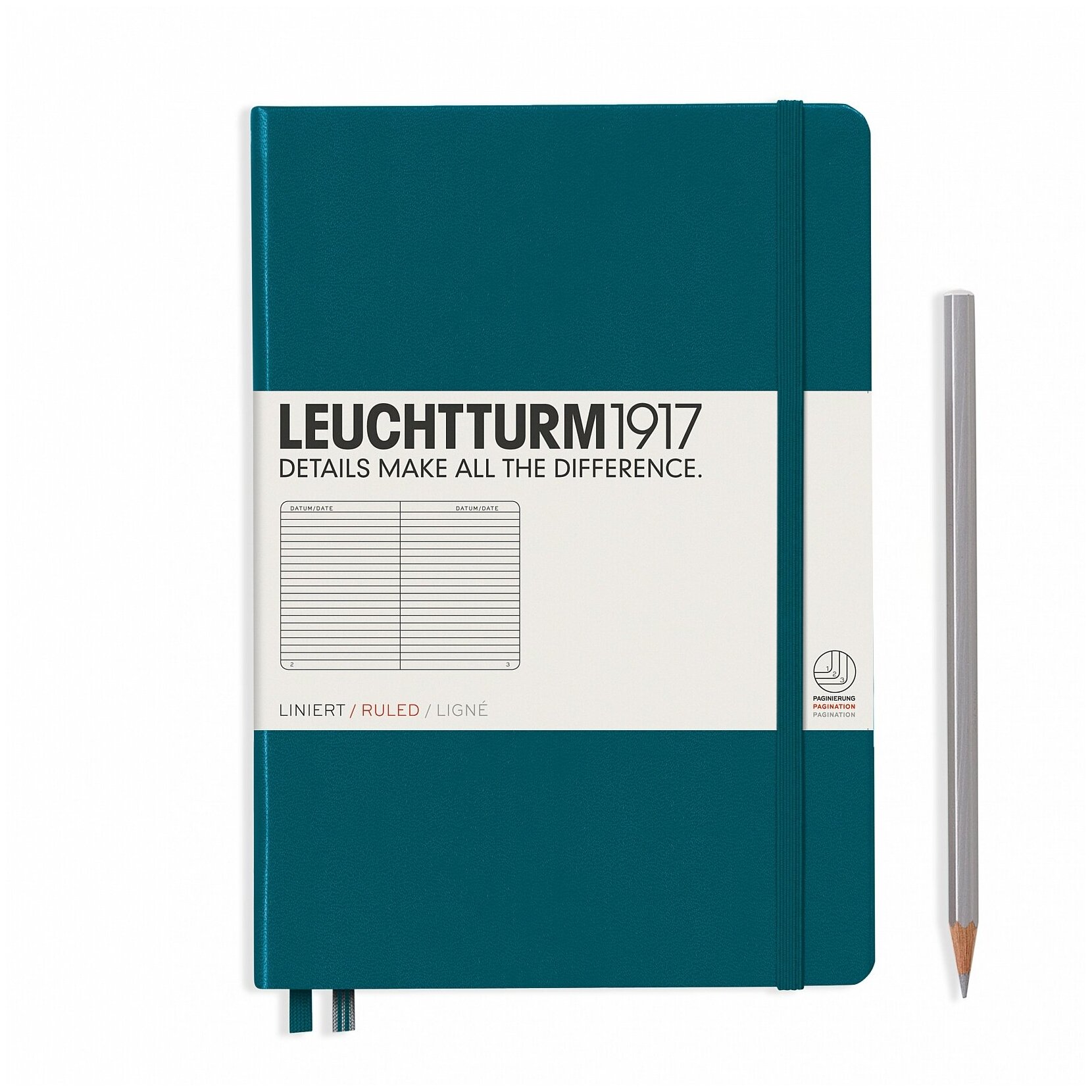 Leuchtturm 359692 Блокнот leuchtturm classic, a5, 80 г/м2, 251 стр, в линейку, твердая обложка, тихоокеанский зеленый информация: