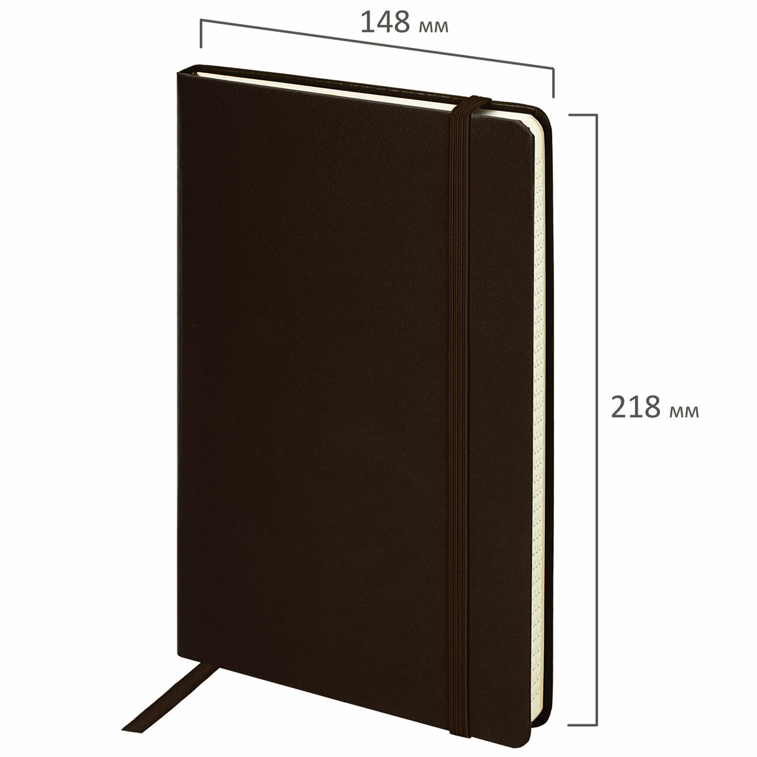 Бизнес-блокнот, записная книжка, тетрадь А5 (148x218 мм), Brauberg Metropolis, балакрон, 80 л, резинка, клетка, коричневый, 111586 информация: