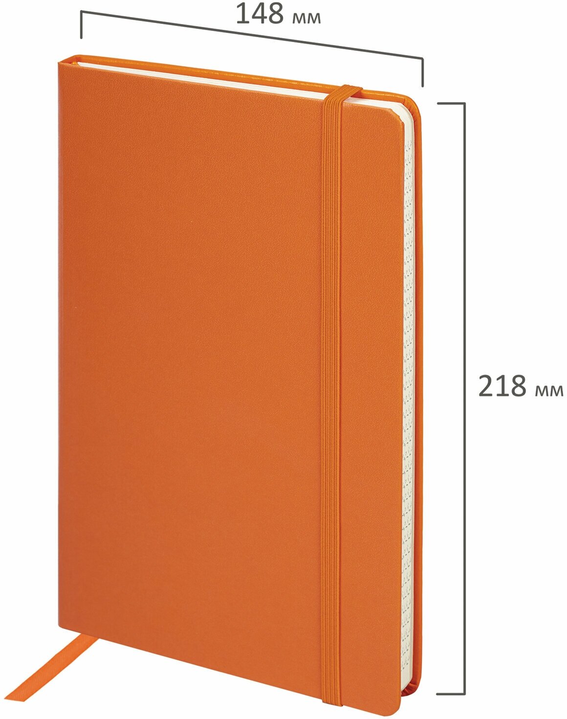Блокнот А5 (148х218 мм), BRAUBERG "Metropolis", балакрон, резинка, 80 л., оранжевый, 111584