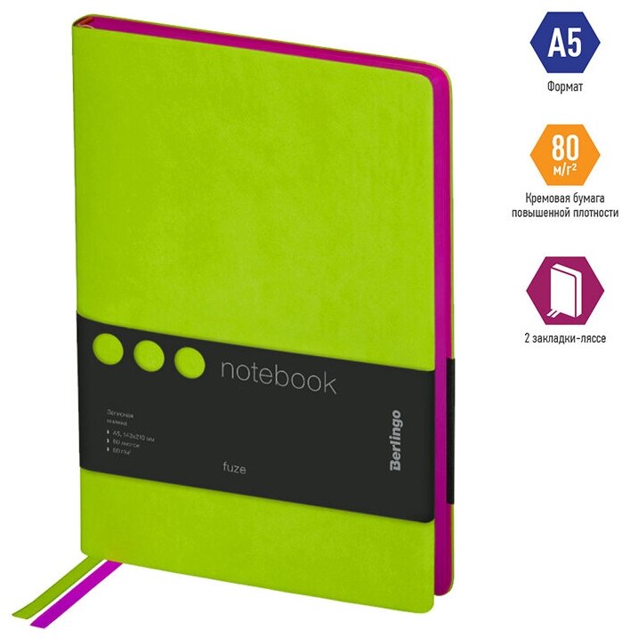 Отзывы на Записная книжка А5 80л, кожзам, Berlingo "Fuze", цветной срез, салатовый