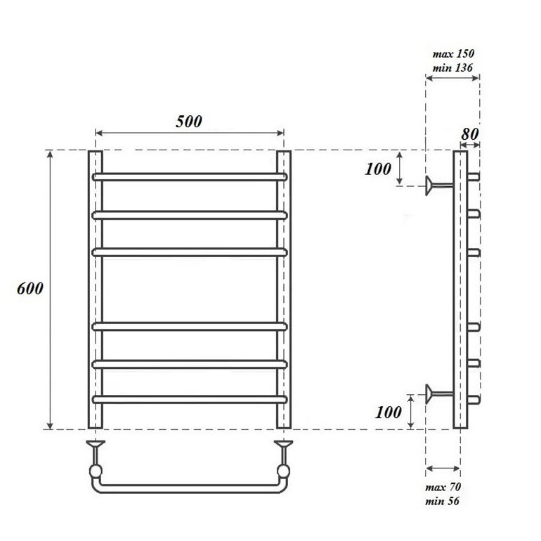 Водяной полотенцесушитель Point П6 50х60 PN09156 информация: