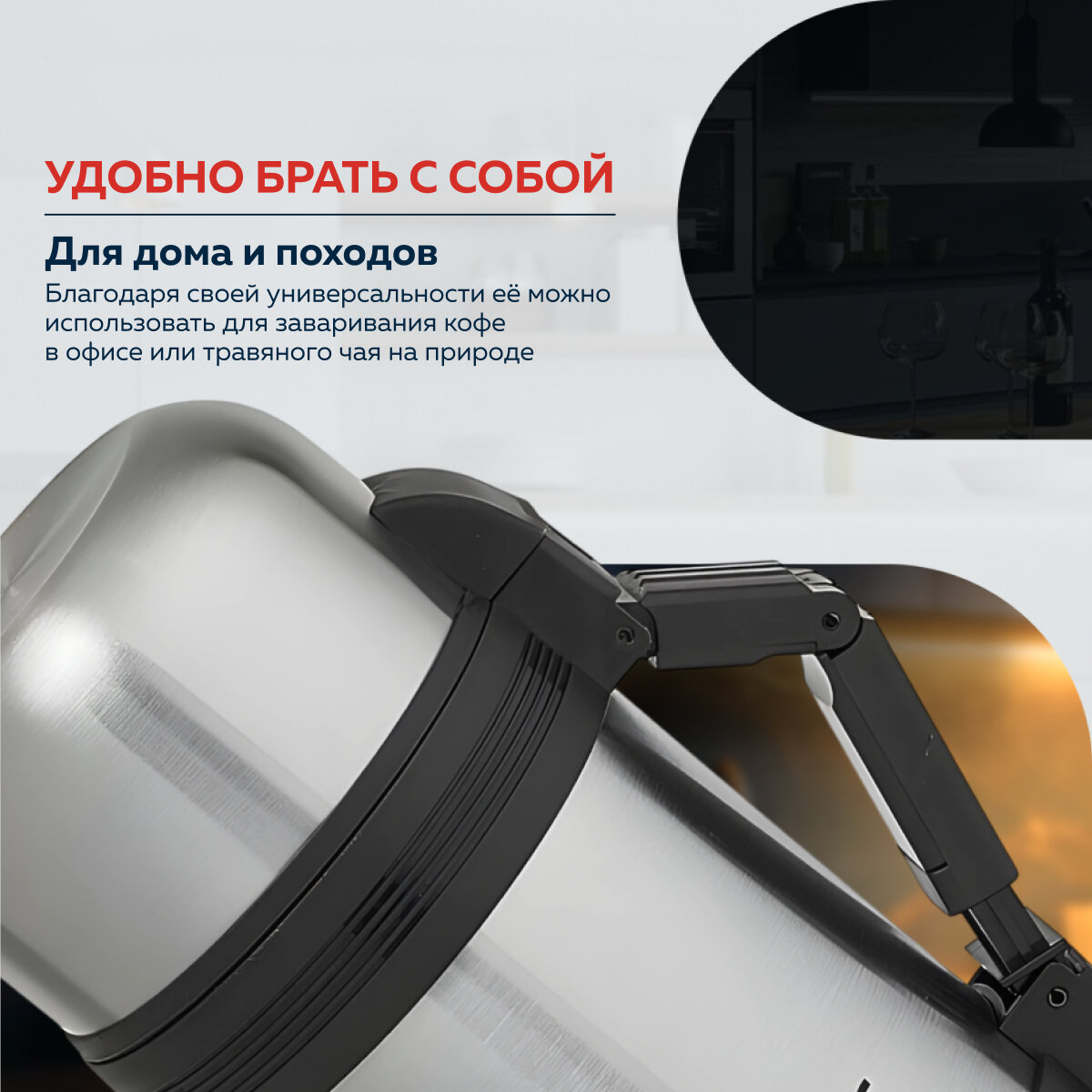 Термос Weber SST-800P, 800 мл, нержавеющая сталь, с кнопкой, ремень для переноски, стальной информация: