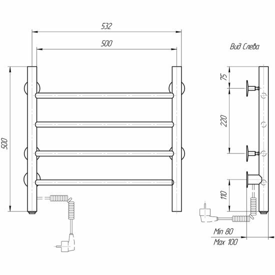 Полотенцесушитель электрический Маргроид В10 30х80, таймер, черный матовый