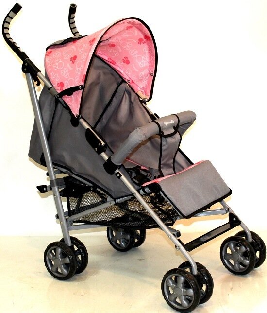 Коляска трость Stiony LIGHT PINK (розовый в кружок) с чехлом и дождевиком информация: