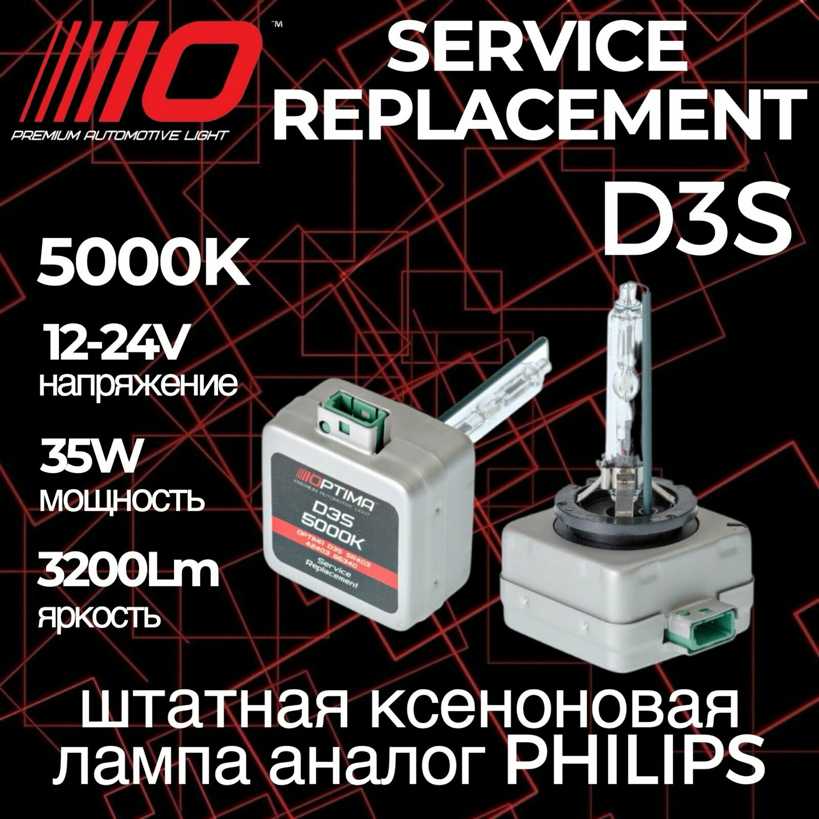 Ксеноновая лампа Optima Service Replacement D3S, 12-24V, 5000K, 3200Lm, 35 Вт (1 лампа) информация:
