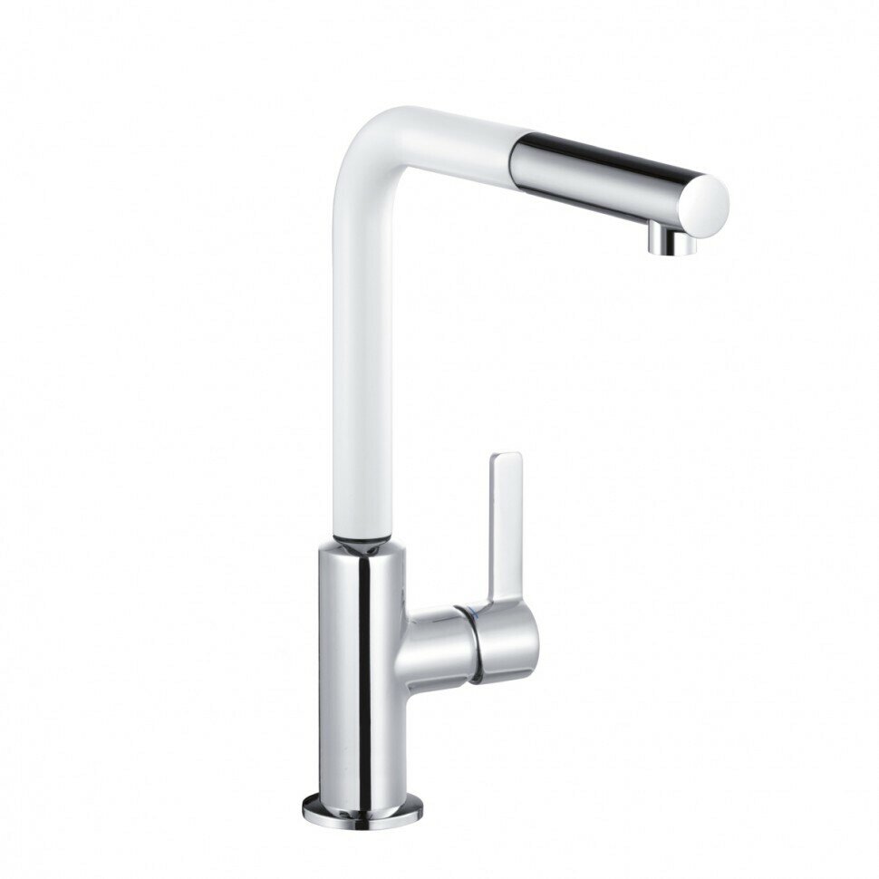 KLUDI L-INE S Однорычажный кухонный смеситель DN 15, с выдвижным изливом, хром/белый матовый, арт. 408519375