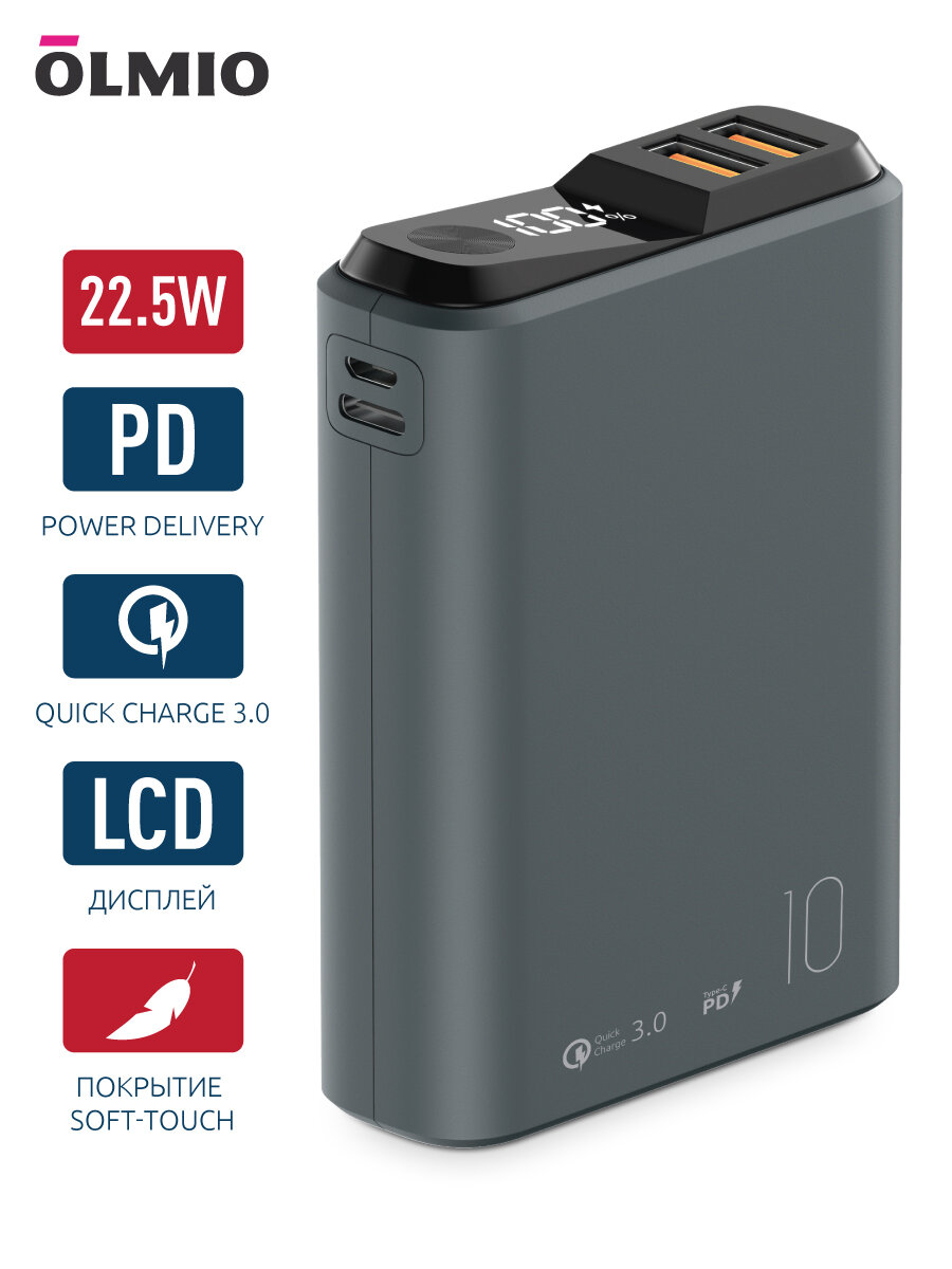 10 цен на Внешний аккумулятор Olmio QS-10, 10000 mAh, QuickCharge3.0 и PowerDelivery, 18 W, темно-серый