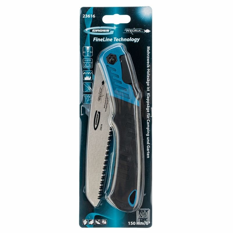 Пила по дереву Piranha, складная, для кемпинга и сада, 150 мм, 9-10 TPI, подкаленый зуб 3D, двухкомпонентная рукоятка Gross, 23616 информация: