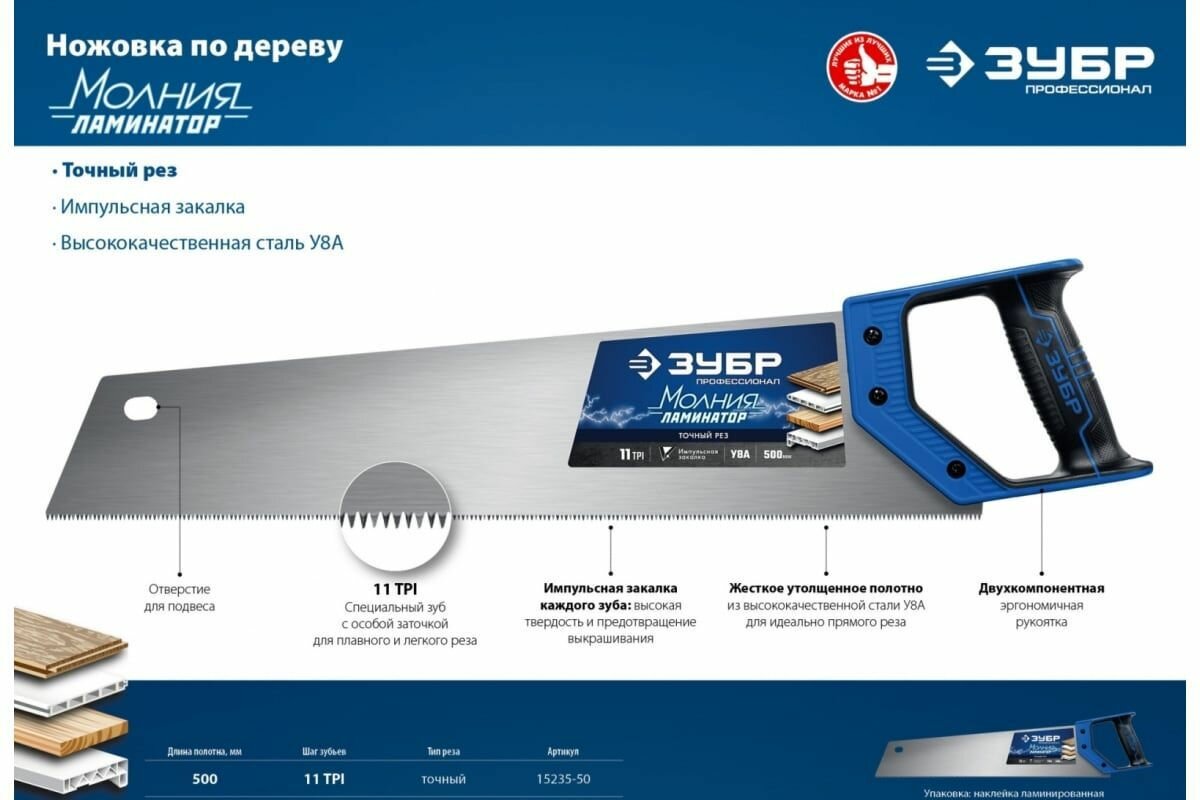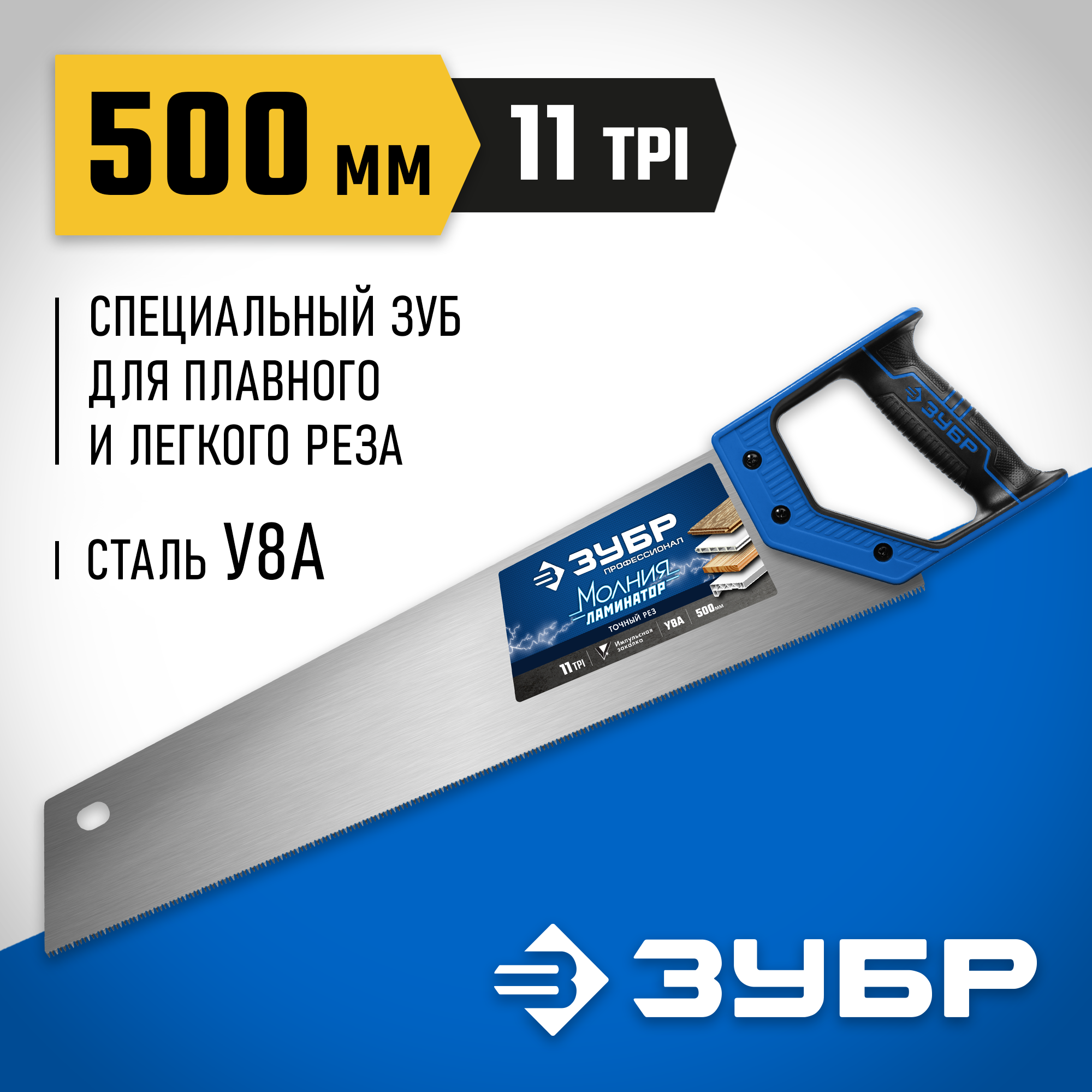 10 цен на Ножовка по дереву Зубр Молния-ламинатор 500 мм, 11TPI, 3D зуб, 15235-50