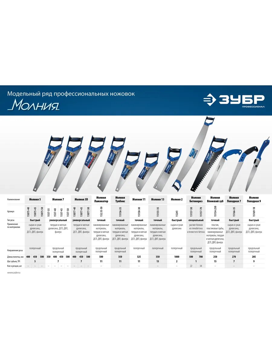 Молния 13, 35 х 11 см, 13TPI, ножовка с обушком, Профессион информация: