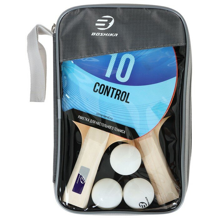 Набор для настольного тенниса BOSHIKA Control 10, 2 ракетки,3 мяча, губка 1,5 мм, коническая ручка