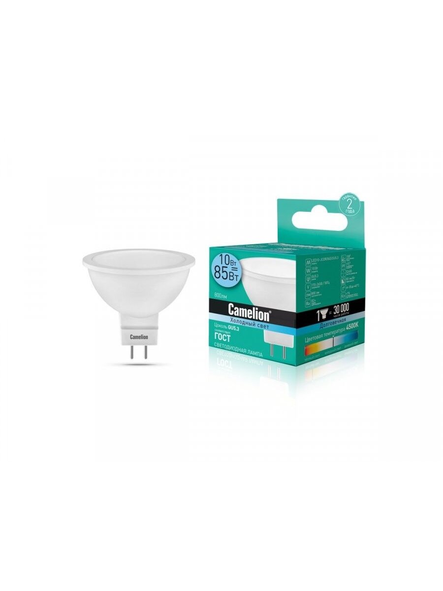 Комплект 10 шт. светодиодная LED лампа Camelion MR16 GU5.3 220V 10W(800lm 100°) 4500K 4K матов. 50x46 пластик LED10-JCDR/845/GU5.3 695024 1 932 ₽