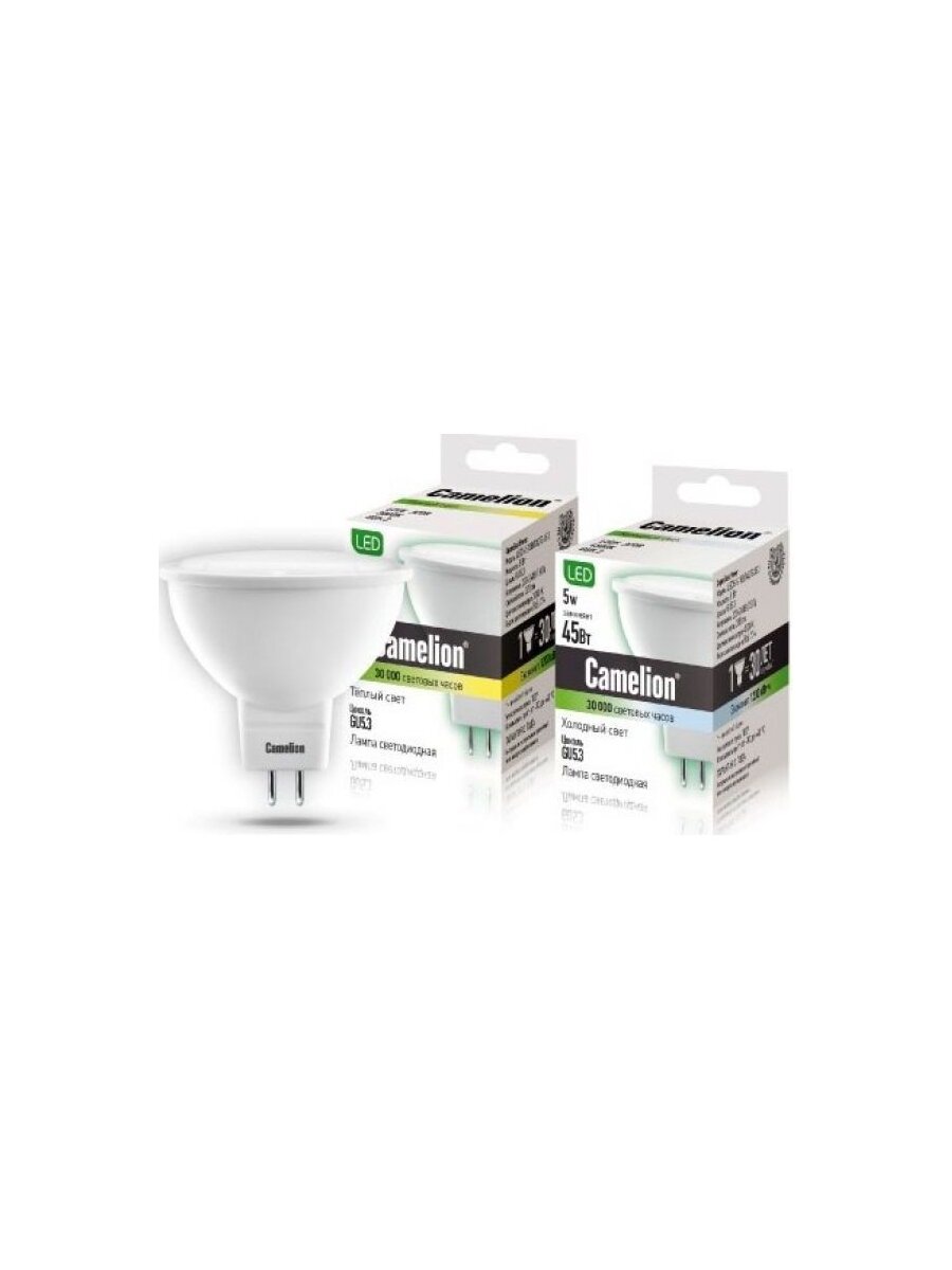 Отзывы на (10 шт.) Светодиодная лампочка Camelion MR16 GU5.3 220V 5W(385lm 100°) 4500K 4K матов. 49x50 пластик LED5-S108/845/GU5.3 Нейтральный белый. Цоколь GU5.3