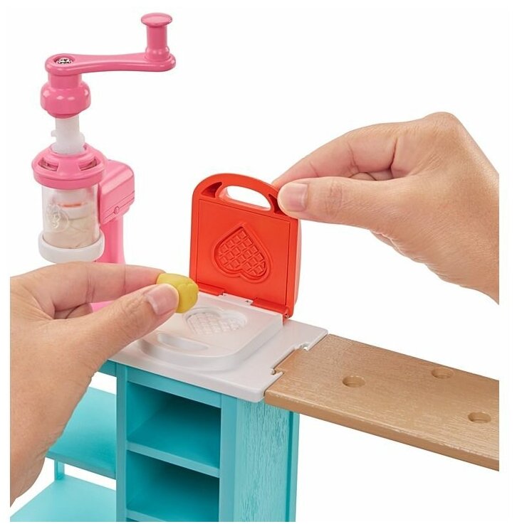 | Дополнительная информация | столешница с двумя рабочими местами и тумбочкой; машинка для взбивания сливок; вафельница; банки с массой для приготовления - 2 шт.; тарелки - 2 шт.; вилки - 2 шт.; лопаточка; бутылка с шоколадным соусом |