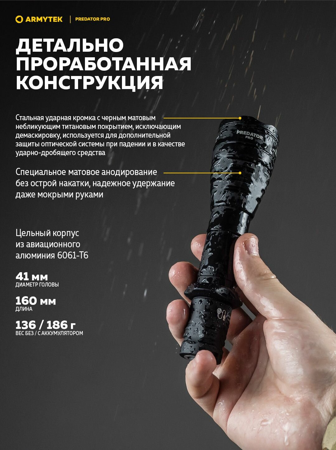 Фонарь тактический Armytek Predator Pro Magnet USB (белый свет) F07301C информация: