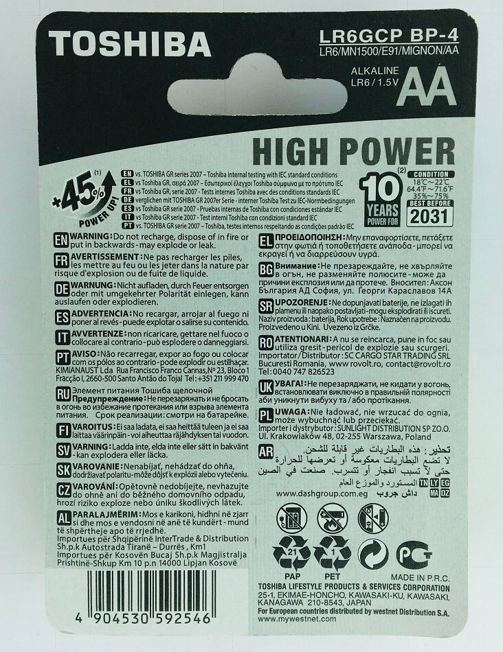 Батарейка TOSHIBA арт. LR6GCPBP4