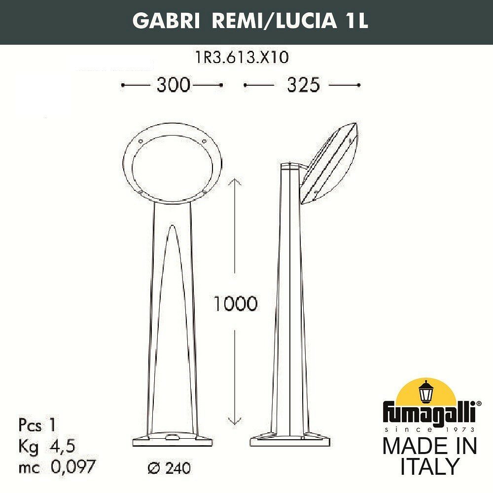 Свет Fumagalli Наземный светильник наклонный GABRI Remi/Lucia 1L. 1R3.613.X10.LYE27 9 363 ₽