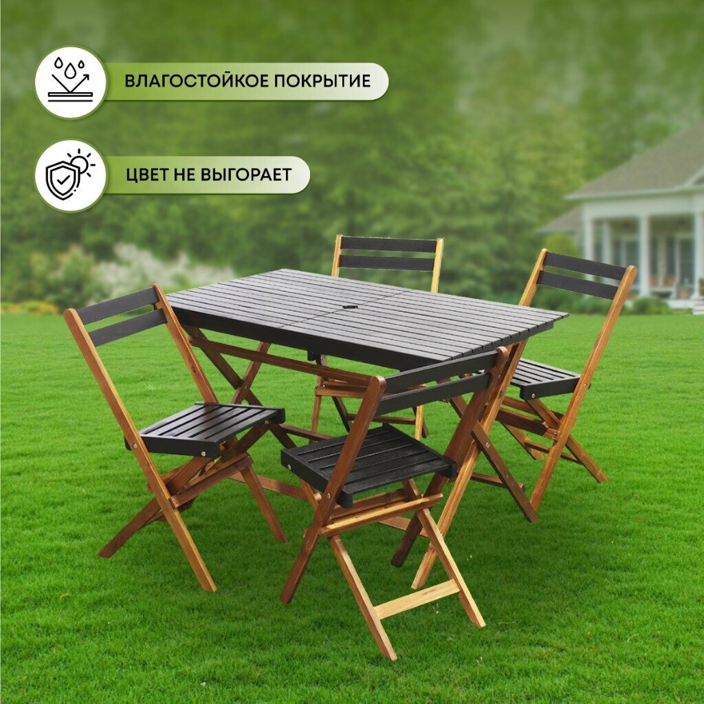 Мебель садовая Green Days, Уютные вечера, черная, стол, 120х72х70 см, 4 стула, 80 кг, DS-DT04 46 220 ₽