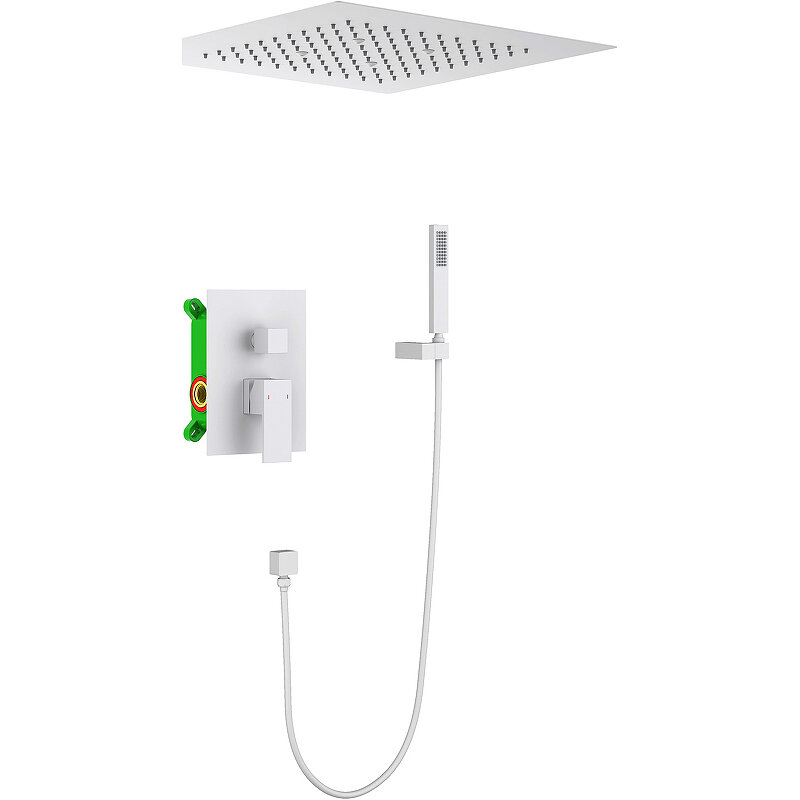 | Комплектация | Смеситель с монтажной коробкой / скрытого монтажа - 1 шт. / ручная лейка 3-х режимная (пластик) - 1 шт. / держатель ручной лейки (пластик) - 1 шт. / декоративная накладка смесителя (латунная) - 1 шт. / ручка дивертора - 1 шт. / шланг душа 1,5 м (латунный) - 1 шт. / отвод из стены - 1 шт. / тропический душ / потолочный (латунный) с установочной коробкой - 1 шт. / подвесные кронштейны (комплект) - 1 шт. / подводка к тропической лейке 1 м - 1 шт. / инструкция - 1 шт. |