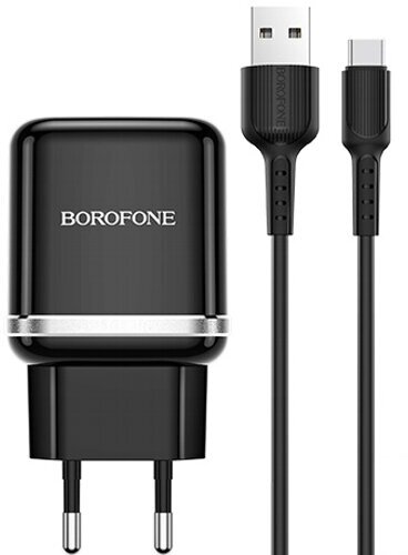 10 цен на Сетевой адаптер питания USB-Af + кабель Type-Cm Borofone BA36A HighSpeed Black зарядка 3А 18W QC3.0 - чёрный