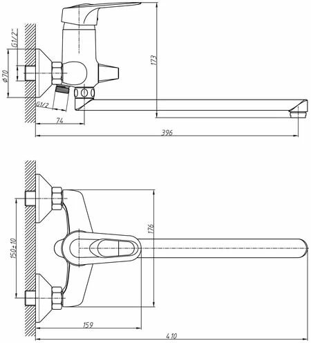Смеситель на раковину настенный Эверест B46-350 с круглым поворотным изливом, кран-буксы 1/2", хром