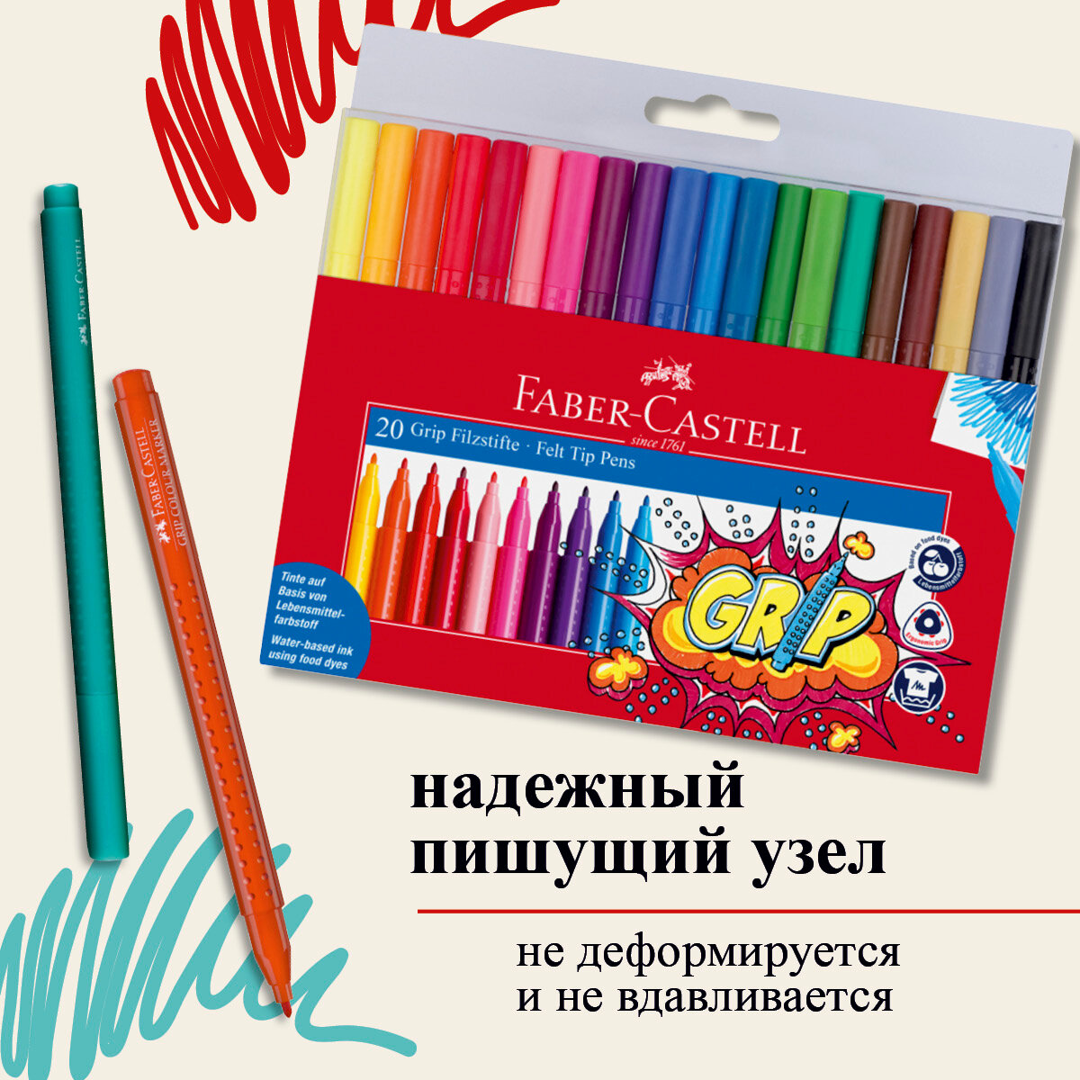 Фломастеры Faber-Castell Grip, набор 20 цветов (Faber-Castell 155320)