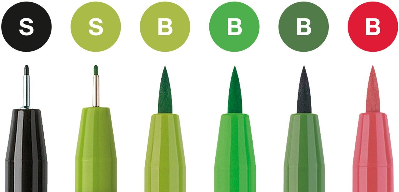 | Дополнительная информация | в составе набора 2 ручки с пишущим узлом 0,3 мм черная и зеленая, 3 ручки разных оттенков зеленого и 1 ручка розового цвета с кистевым пишущим узлом |