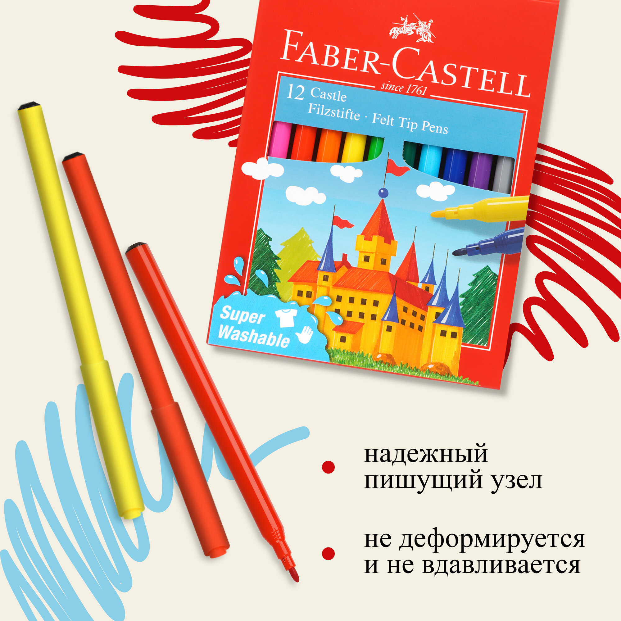 10 цен на Фломастеры Faber-Castell "Замок", 12цв, смываемые