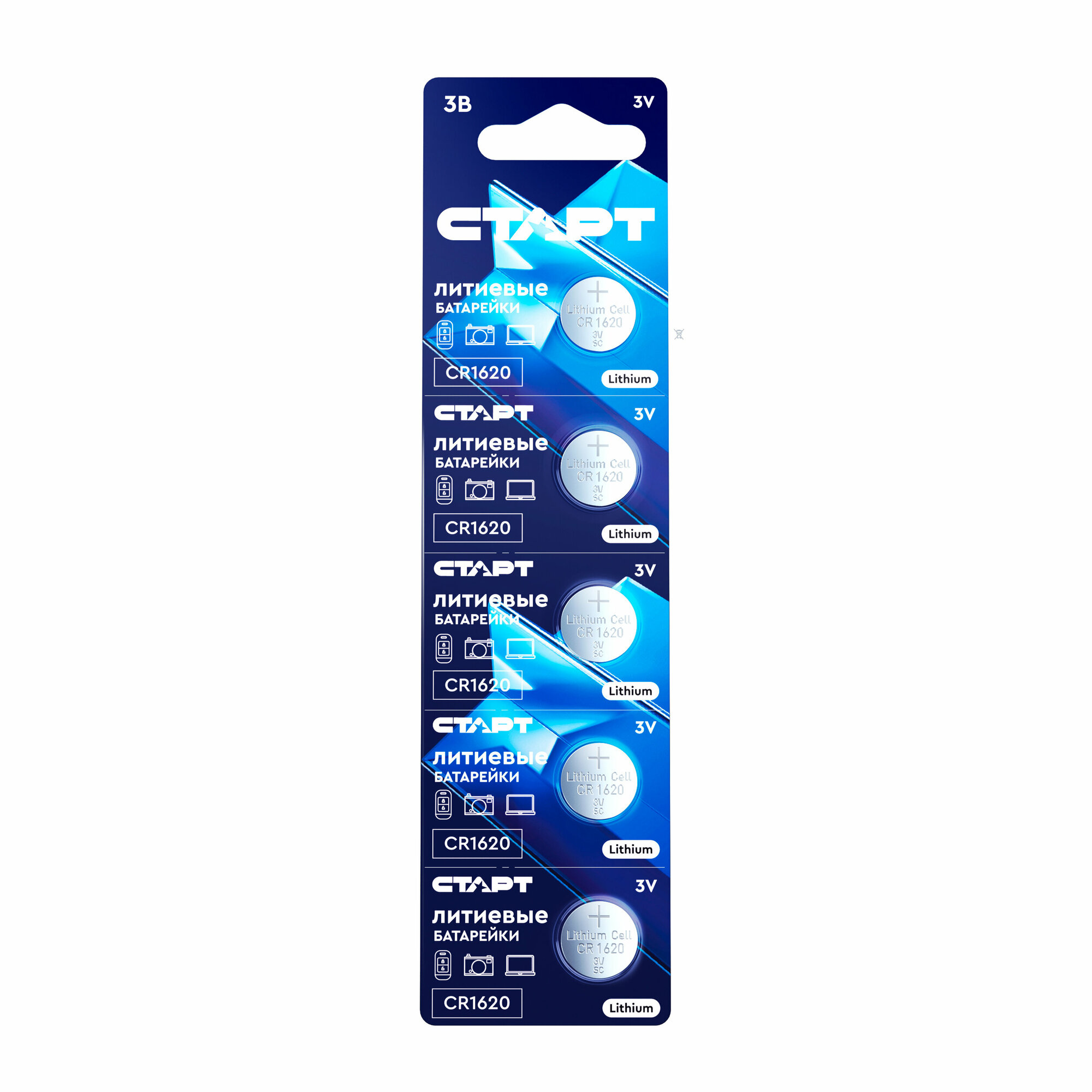 10 цен на Батарейка литиевая старт, CR1620-5BL, 3В, блистер, 5 шт.