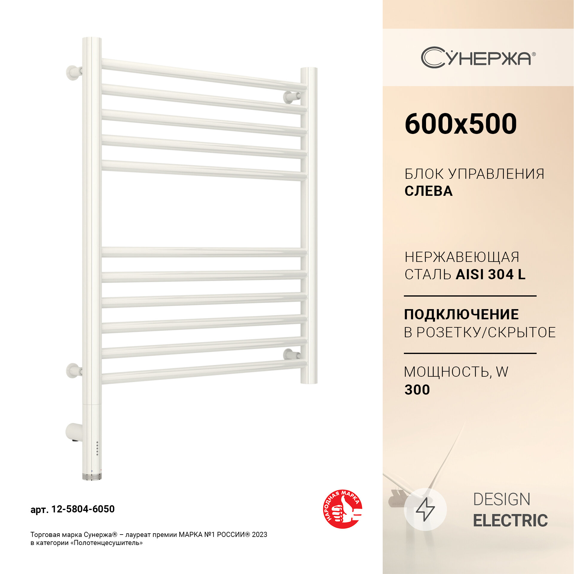 Электрический полотенцесушитель Сунержа Богема 3.0 прямая 600x500 МЭМ Лев. сатин арт. 071-5804-6050