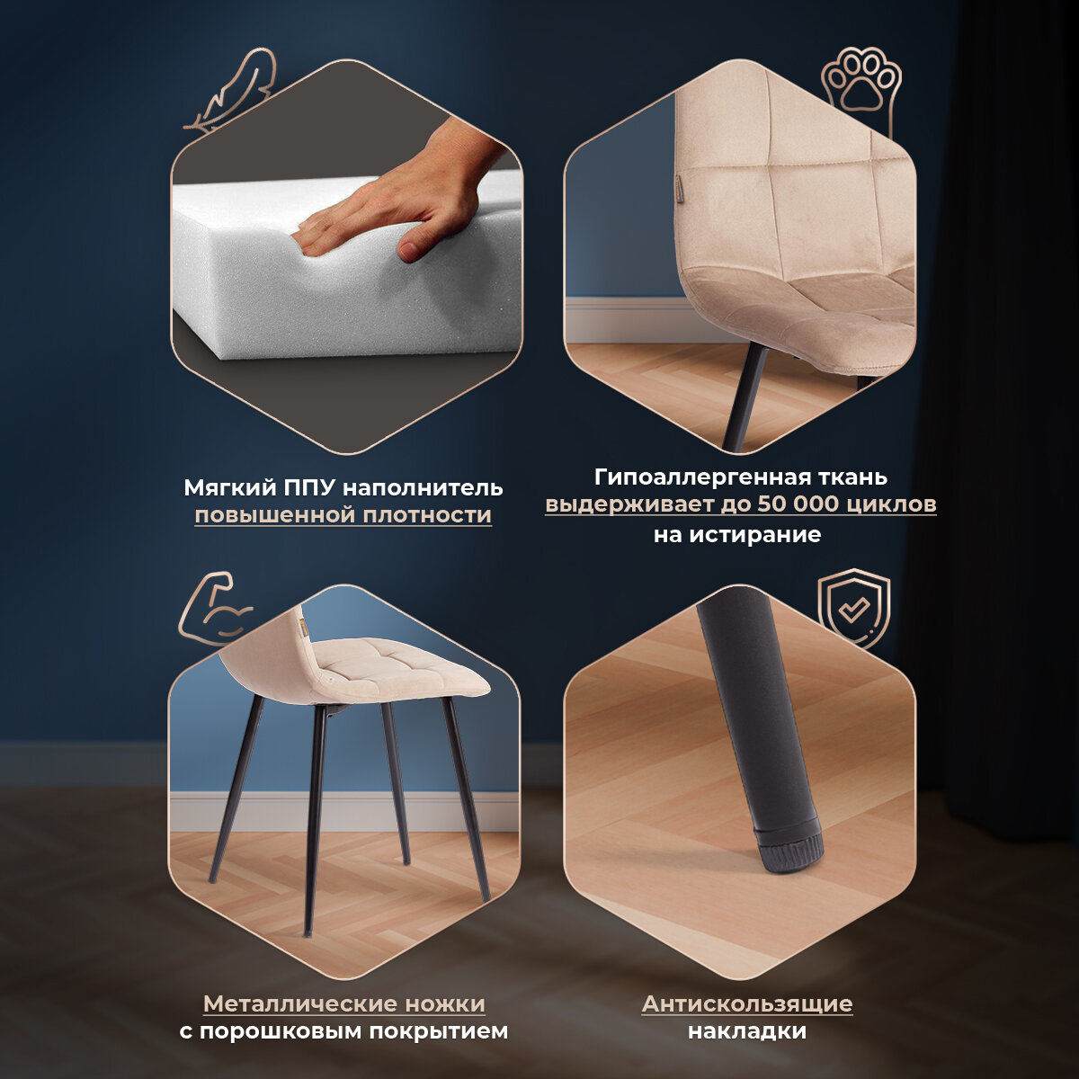 10 цен на Комплект стульев TetChair CHILLY (mod. JSC-220), 4 шт, велюр/металл, бежевый/черный