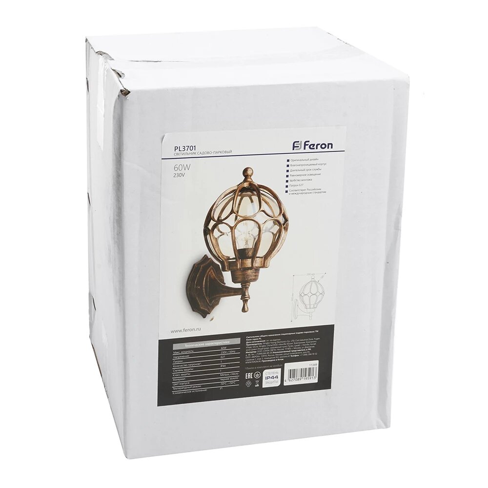 10 цен на Светильник садово-парковый Feron PL3701 круглый на стену вверх 60W 230V E27, черное золото (11349)