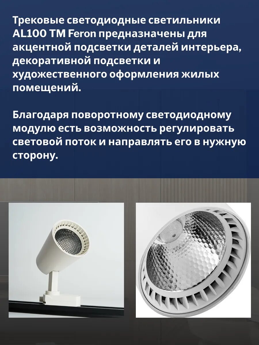 Светодиодный светильник Feron AL103 трековый на шинопровод 40W 4000K 35 градусов белый, 3х фазный Артикул 41603