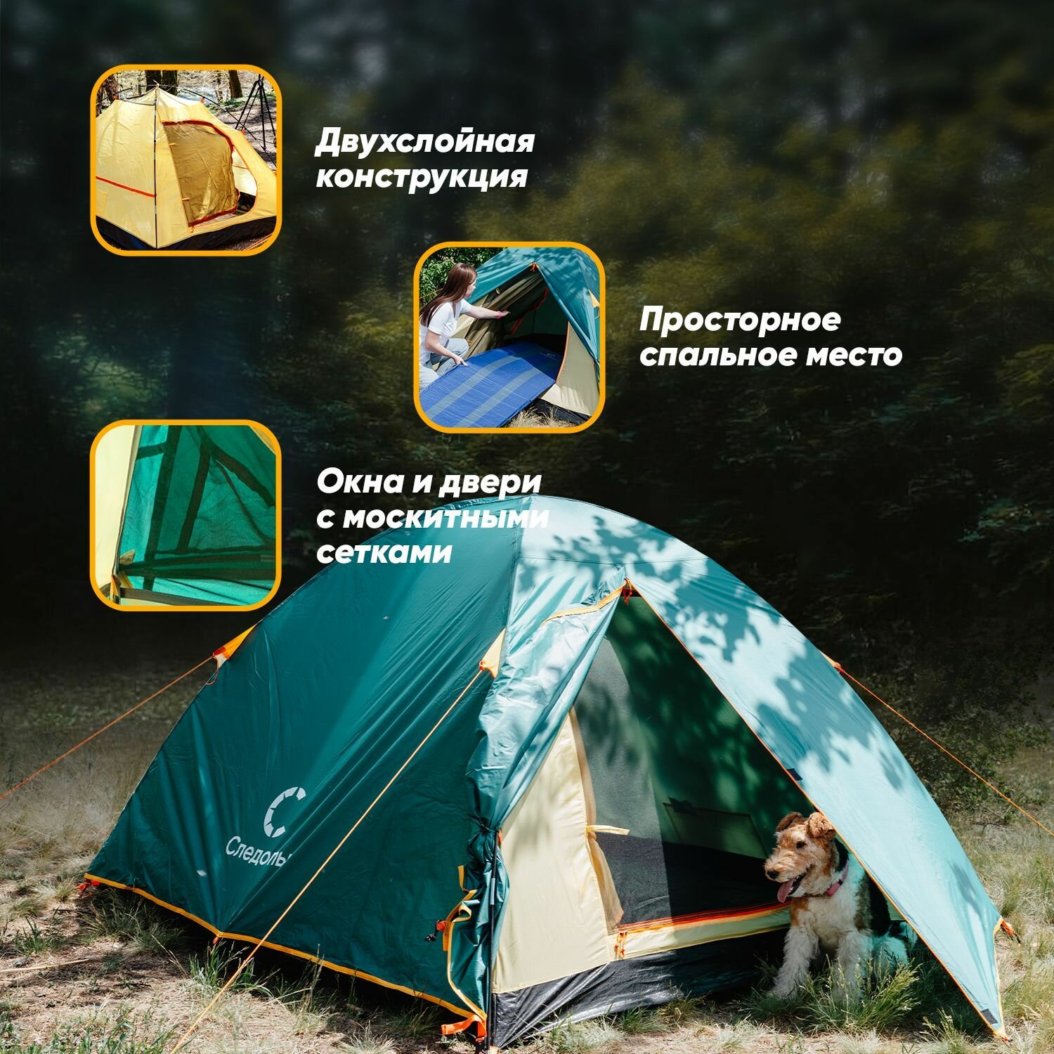 Палатка туристическая кемпинговая СЛЕДОПЫТ Selenga 2