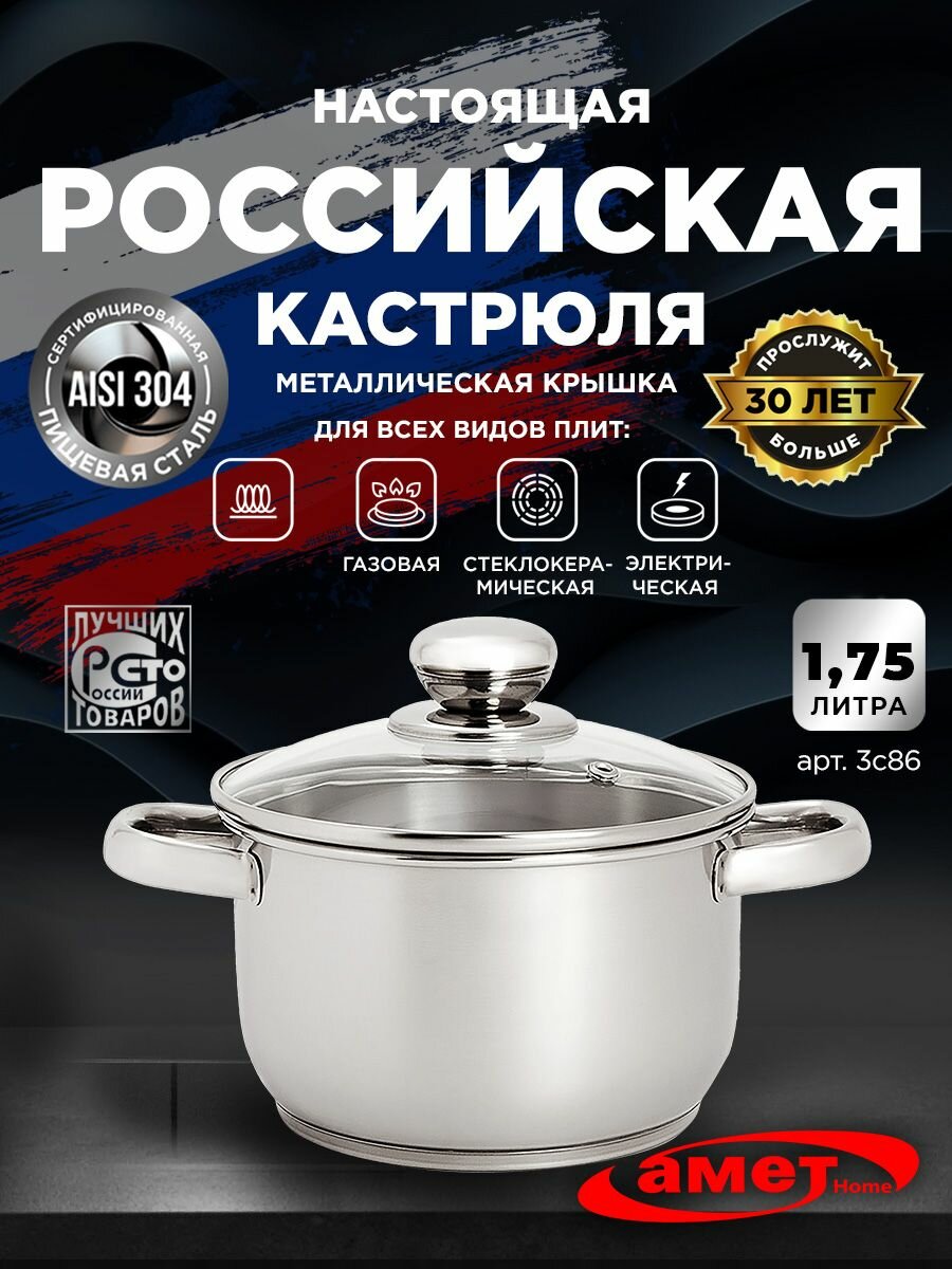 Кастрюля 1,75 л амет, Классика-Прима, 1С-803, нерж.сталь, зеркальная полировка
