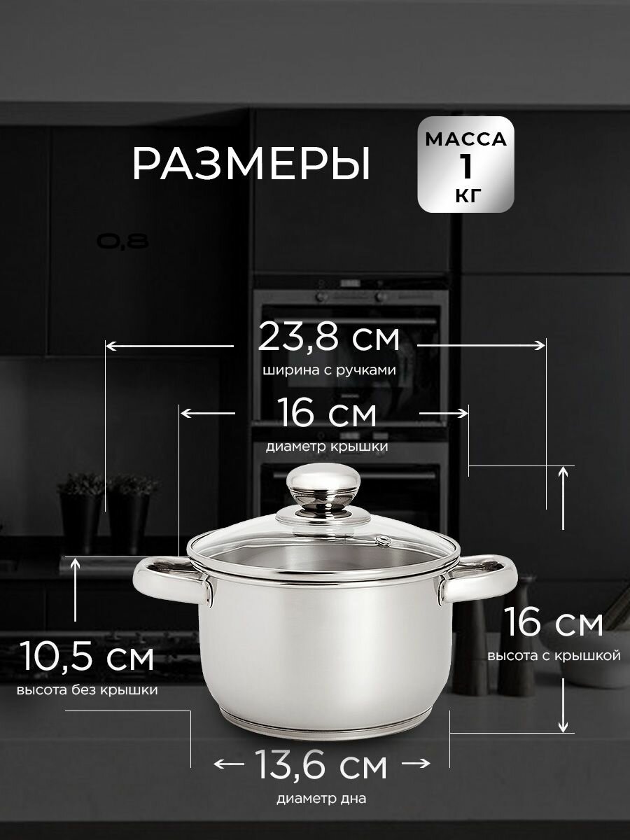 Кастрюля "Прима Блеск" 1,75 л. со стеклянной крышкой информация: